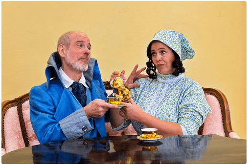 Der Hausherr Stockmauer lässt Felder und seinen Diener Bumml wegen der Mietschulden in ihrer Wohnung festhalten, bis sie bezahlen können.